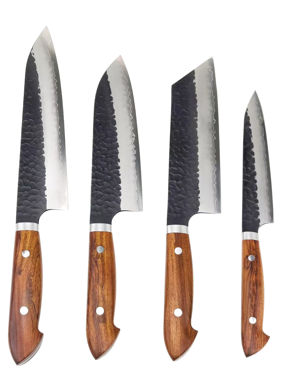 銀紙三号 三層割込包丁|黒槌目凸凹(黒チタン加工)が生む食材離れと鋭い切れ味を両立したプロ仕様モデル