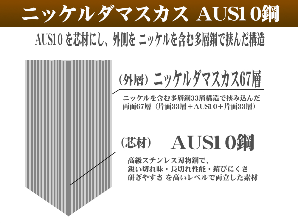 (予約販売) 牛刀包丁210 NIDM67AUS10 両刃 磨ブラスト 黒合板柄 【晶之作】