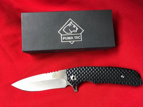 ロック/柄/鞘/銘ライナーロック/G10黒エンボス加工/専用黒ギフト箱/PUMA TEC