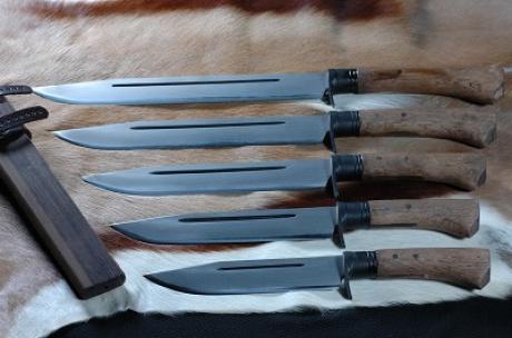 狩猟 > [予約販売] 土佐古式 狩猟ナイフ300 両刃 DM15青2(7層+青2+7層) 全曇 洋樫柄オイルステン 黒ツバ 木鞘(銅板なし)皮バンド付 晶之作:特注ページ