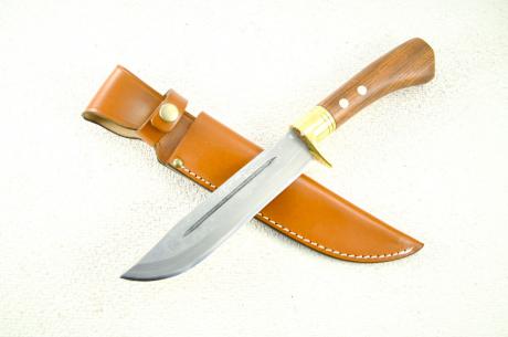 【職人技 高級剣鉈特集】001 ブビンガ剣鉈 175 DM15青2 全曇 真鍮ツバ 茶皮ケース ブビンガ 【訳有/海外展示会展示品:傷有 ノークレームノーリターン:承諾の上注文】