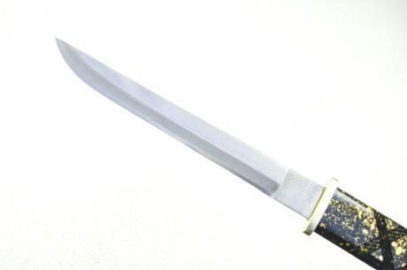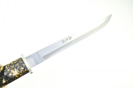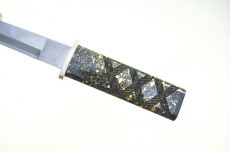 【職人技 高級剣鉈特集ver10】004 【漆拵】 有害駆除 護身刀 238 白鋼 磨 ニッケルシルバー W 木鞘漆塗(黒金チラシ) 漆朴木チェッカー (黒金チラシ) 【晶之作】 【訳有/海外展示会展示品:傷有 ノークレームノーリターン:承諾の上注文】