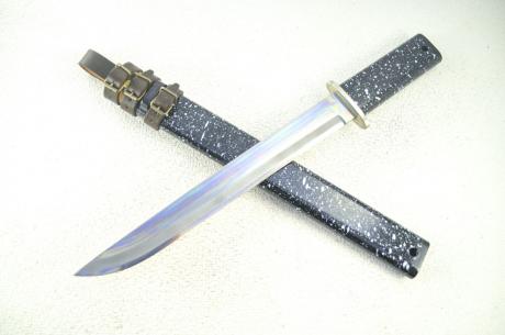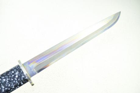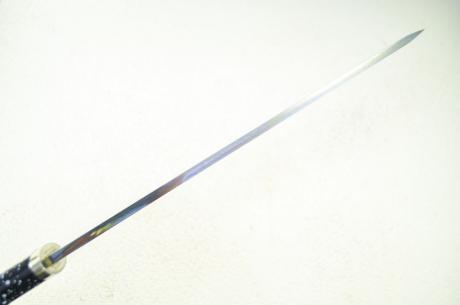 | 表面仕上/血溝/鞘/鞘備考 | 磨/ヒなし/木鞘漆塗(黒白チラシ)/チョコ皮バンド |