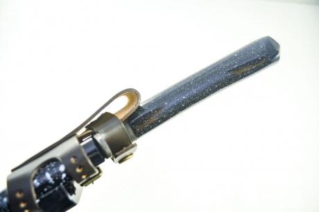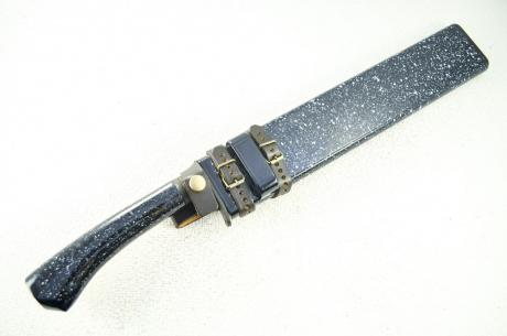 | 表面仕上/血溝/鞘/鞘備考 | 黒槌目/ヒなし/木鞘漆塗(黒白チラシ)/チョコ皮バンド |