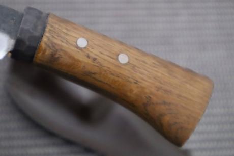 | 厚mm/鋼/柄/輪/重g | 3.9/DM31青2(15+青2+15)/洋樫オイルステン/黒丸輪/90 |