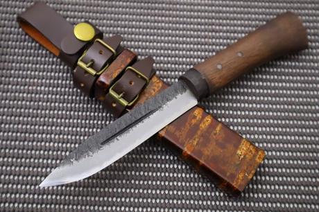 こちらの商品はセール品の為、クレームやご返品・ご返金には対応致しかねます。 また、1点限りの商品の為パーツの交換等も出来かねますので、ご了承の上ご購入くださいませ。 また、日の当たり方やモニタの違いにより実際の商品とは色味などが若干違う場合がございます。 予めご了承くださいませ。 当社が推奨する使用方法であっても、 扱い方を誤れば刃が欠けたり、折れたりすることがございます。 ご使用後の欠けや折れに関しましては補償を致しかねますので、 あらかじめご了承くださいますようお願い申し上げます。 正当な理由なくこの商品を携帯することは法令により禁止されております。 18歳未満の方はこの商品を購入しないようお願いします。アウトドア キャンプでお楽しみくださいませ。- 鍛冶師の経験が光る刃。実用と美の両立。