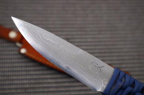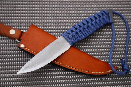 【ダマスカス特集】002和式ラブレス/フルタング青パラコード巻 90DM15青2全曇 茶皮ケース フルタング青パラシュートコード巻 【晶之作】