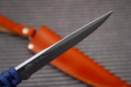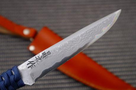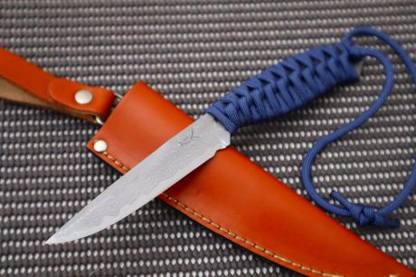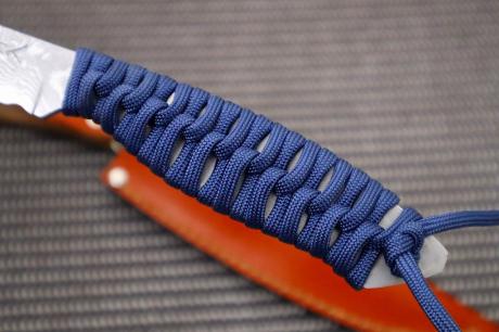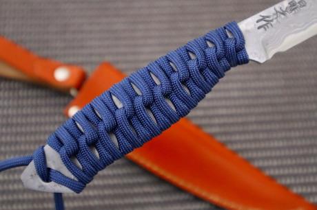 【ダマスカス特集】006和式ラブレス/フルタング青パラコード巻 95DM15青2全曇 茶皮ケース フルタング青パラシュートコード巻 【晶之作】