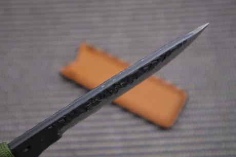 【ダマスカス特集】006和式ラブレス/フルタング緑パラコード巻 88 DM15青2 黒槌目 合皮茶ケース フルタング緑パラシュートコード巻 【晶之作】