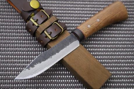 【ダマスカス特集】008土佐副剣鉈 105 DM15青2 黒槌目 黒丸輪 木鞘オイルステン 洋樫オイルステン 【晶之作】