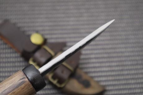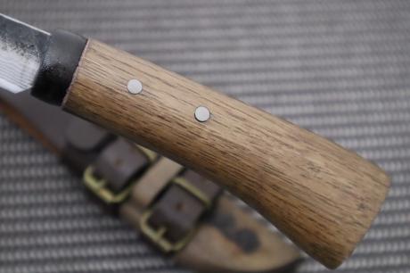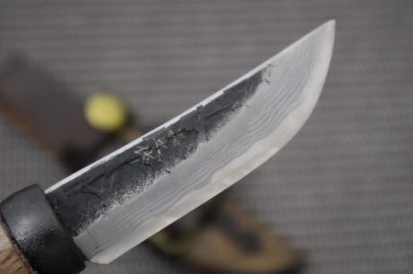 | 表面仕上/血溝/鞘/鞘備考 | 黒槌目/ヒなし/木鞘オイルステン/牛皮バンドチョコ色 |