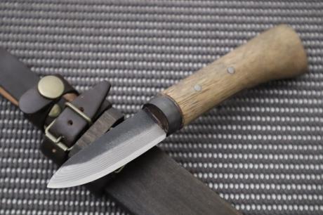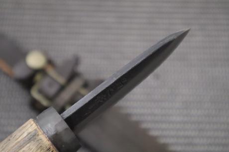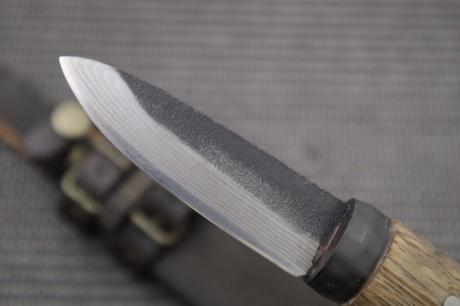 | 表面仕上/血溝/鞘/鞘備考 | 黒槌目/ヒなし/木鞘オイルステン/牛皮バンドチョコ色 |