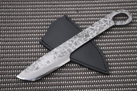 【ダマスカス特集】002 ダマスカス万能刀 75 DM15青2 槌目磨 黒皮ケース 【晶之作】
