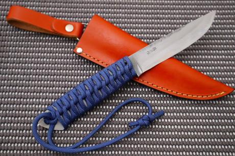 【ダマスカス特集】008和式ラブレス/フルタング青パラコード巻 70DM15青2全曇 茶皮ケース フルタング青パラシュートコード巻 【晶之作】