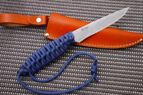 【ダマスカス特集】004和式ラブレス/フルタング青パラコード巻 85DM15青2全曇 茶皮ケース フルタング青パラシュートコード巻 【晶之作】