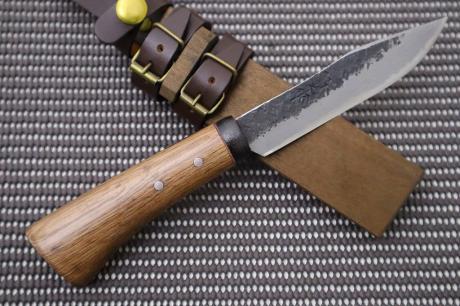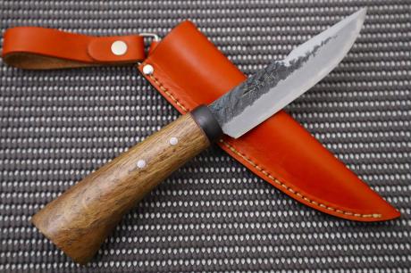 【ダマスカス特集】008土佐副剣鉈 105 DM15青2 黒槌目 黒丸輪 木鞘オイルステン 洋樫オイルステン 【晶之作】