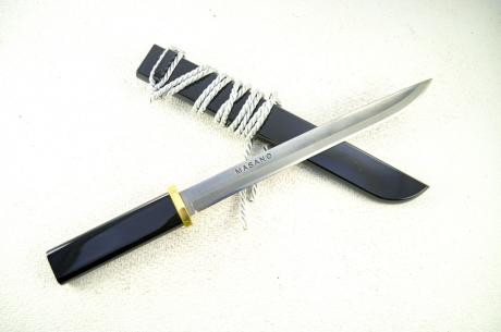 【ボーナス特別:アウトドア特集】003 【漆拵】アウトドア剣鉈 120 日立青紙2号 両刃 磨 真鍮ツバ 木鞘漆塗(黒金) 漆洋樫チェッカー (黒金) 【晶之作】 【訳有/海外展示会展示品:傷有 ノークレームノーリターン:承諾の上注文】