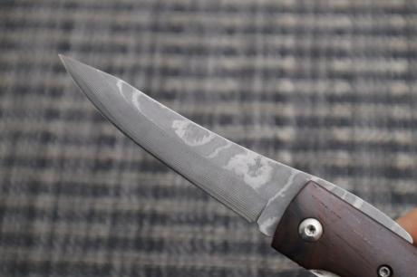 | 刃形/重/鋼/表面 | 両刃/80g/ダマスカスSLD/全磨 |