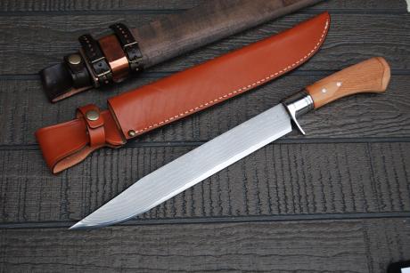 土佐鍛 山師剣鉈240 ダマスカス15青2(7+青2+7)桜柄チェッカー入 牛皮ケース