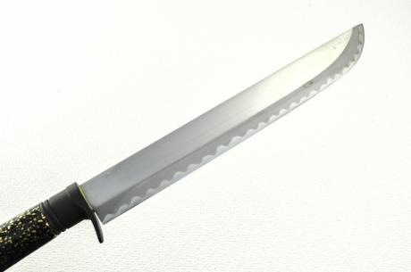 【GW 第3弾】土佐鍛剣鉈黒金チラシ漆 275乱刃 白鋼 両刃 黒鉄ツバ 黒皮ケース 【豊国作】