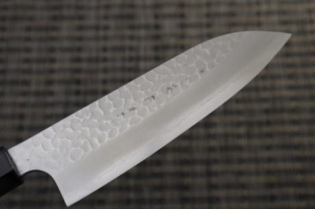 (予約販売) 三徳180 銀三 槌目磨 胡桃水牛八角柄 【晶之作】 (SUS405+銀三+SUS405)
