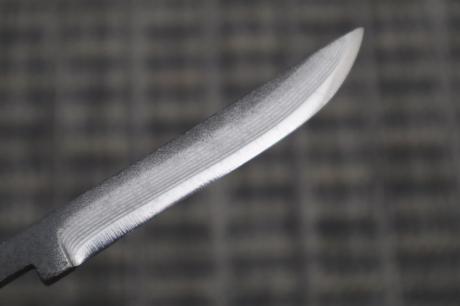 【ダマスカス鍛造小刀特集】 > 【ダマスカス鍛造小刀特集】023 鍛造小刀 60 DM15青2 両刃 黒槌目 【晶之作】 【訳有/展示会展示品:傷有 ノークレームノーリターン:承諾の上注文】