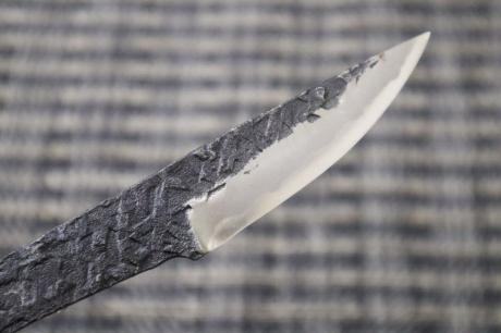 【鍛造小刀特集】 > 【鍛造小刀特集】001 鍛造小刀 65 白鋼 両刃 黒槌目 【晶之作】 【訳有/展示会展示品:傷有 ノークレームノーリターン:承諾の上注文】