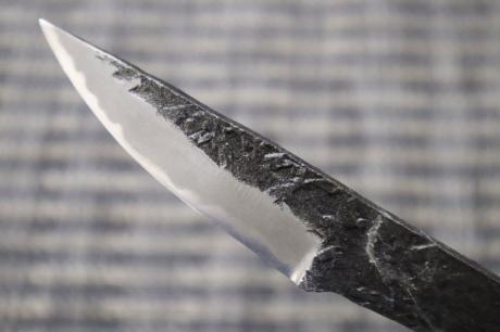 【鍛造小刀特集】001 鍛造小刀 65 白鋼 両刃 黒槌目 【晶之作】 【訳有/展示会展示品:傷有 ノークレームノーリターン:承諾の上注文】[2025:企画番号 128]