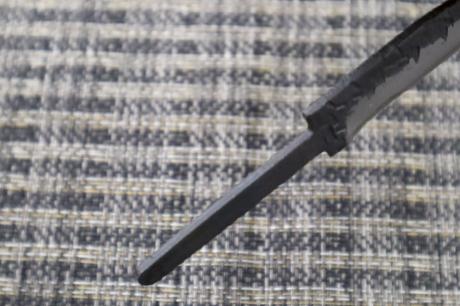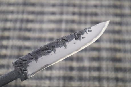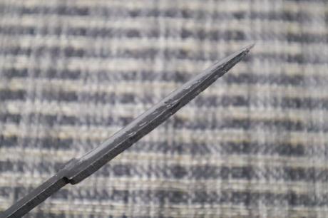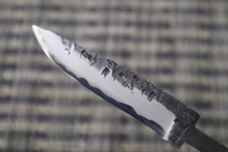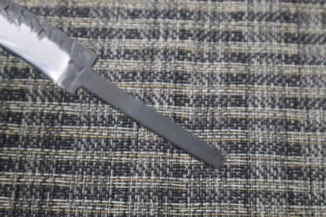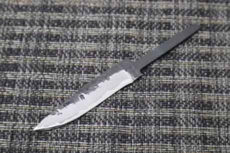 【鍛造小刀特集】 > 【鍛造小刀特集】004 鍛造小刀 70 白鋼 両刃 黒槌目 【晶之作】 【訳有/展示会展示品:傷有 ノークレームノーリターン:承諾の上注文】