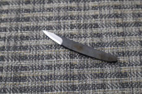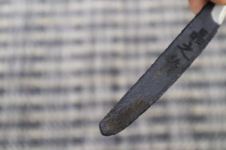 【鍛造小刀特集】005 鍛造小刀 27 白鋼 両刃 黒槌目 【晶之作】 【訳有/展示会展示品:傷有 ノークレームノーリターン:承諾の上注文】[2025:企画番号 128]
