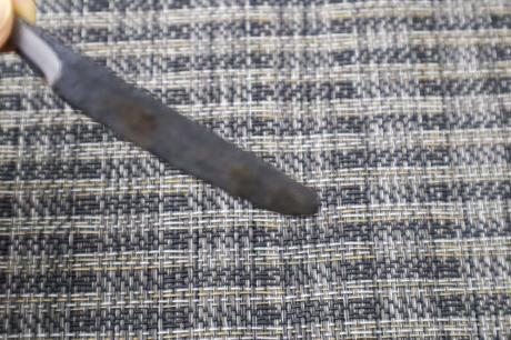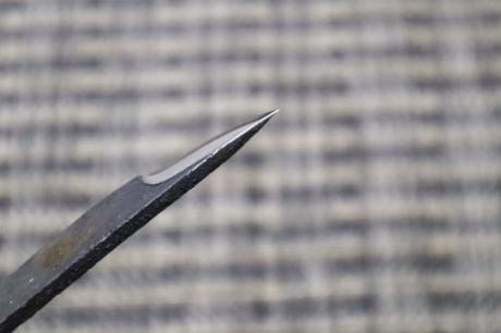 【鍛造小刀特集】 > 【鍛造小刀特集】005 鍛造小刀 27 白鋼 両刃 黒槌目 【晶之作】 【訳有/展示会展示品:傷有 ノークレームノーリターン:承諾の上注文】