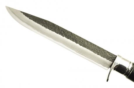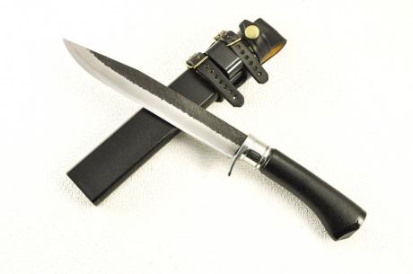 漆剣鉈フェア > 【鍛冶師/漆職人コラボ企画】014土佐鍛 剣鉈 210 DM15青2 両刃 黒槌目 ステンツバ輪木鞘漆塗(黒石目)漆(黒石目)【訳有/ 展示品入替 鞘傷有】【ノークレーム・ノーリターン】【本条件を承諾の上購入】