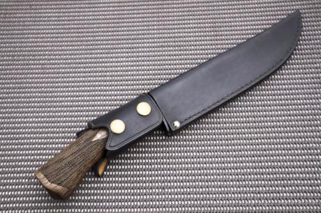 晶之守ステンレスダマスカスモリブデン鋼 カーボングリップ両面 牛皮ケースセット