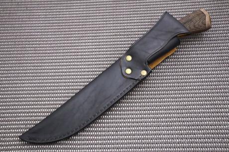 【匠ダマスカス剣鉈シリーズ】 > 【匠ダマスカス剣鉈シリーズ】004 山遊鉈漆黒180 DM15青2 黒槌目 黒ツバ゛ 黒革ケース 洋樫オイルステンテェッカー 【晶之作】 【訳有/海外展示会展示品:傷有 ノークレームノーリターン:承諾の上注文】