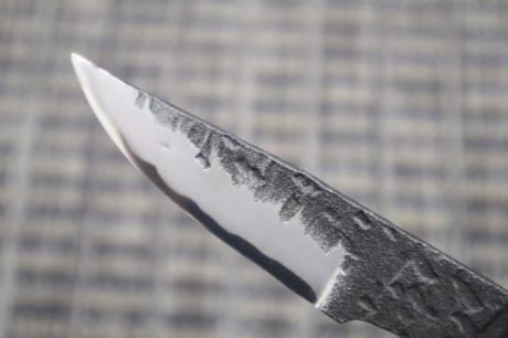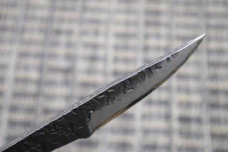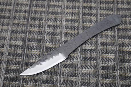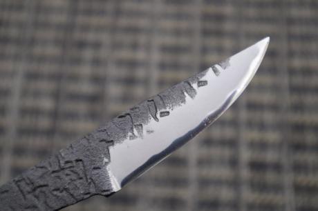 【鍛造小刀特集】 > 【鍛造小刀特集】019 鍛造小刀 63 白鋼 両刃 黒槌目 【晶之作】 【訳有/海外展示会展示品:傷有 ノークレームノーリターン:承諾の上注文】