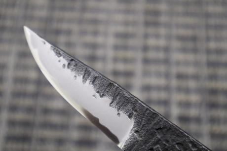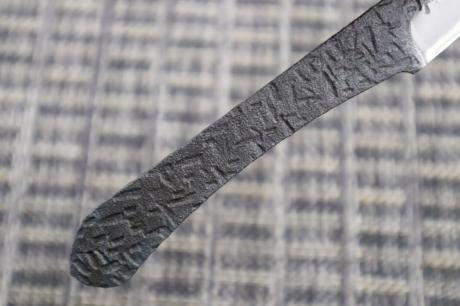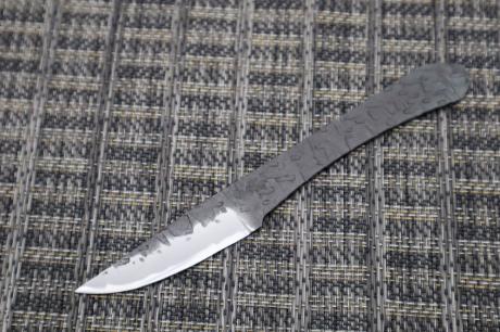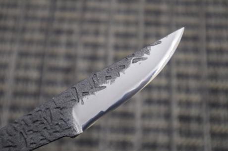 【鍛造小刀特集】 > 【鍛造小刀特集】020 鍛造小刀 63 白鋼 両刃 黒槌目 【晶之作】 【訳有/海外展示会展示品:傷有 ノークレームノーリターン:承諾の上注文】