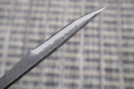 【鍛造小刀特集】020 鍛造小刀 63 白鋼 両刃 黒槌目 【晶之作】 【訳有/海外展示会展示品:傷有 ノークレームノーリターン:承諾の上注文】[2025:企画番号 121 小刀32本 ]