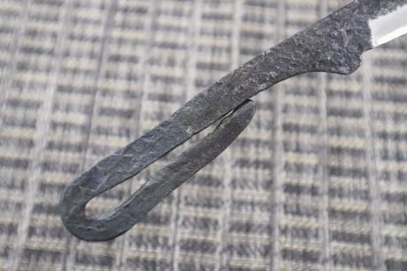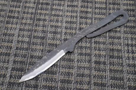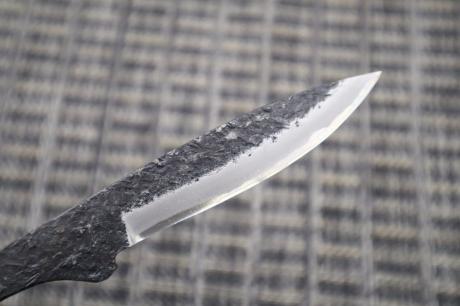 【鍛造小刀特集】 > 【鍛造小刀特集】032 鍛造小刀 85 白鋼 両刃 黒槌目 【晶之作】 【訳有/海外展示会展示品:傷有 ノークレームノーリターン:承諾の上注文】