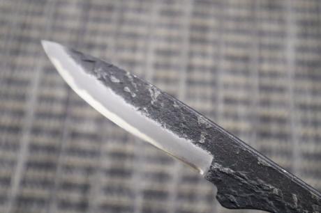 【鍛造小刀特集】032 鍛造小刀 85 白鋼 両刃 黒槌目 【晶之作】 【訳有/海外展示会展示品:傷有 ノークレームノーリターン:承諾の上注文】[2025:企画番号 121 小刀32本 ]
