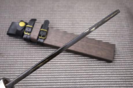 | 表面仕上/血溝/鞘/鞘備考 | 黒槌目/ヒなし/木鞘オイルステン/黒皮バンド |