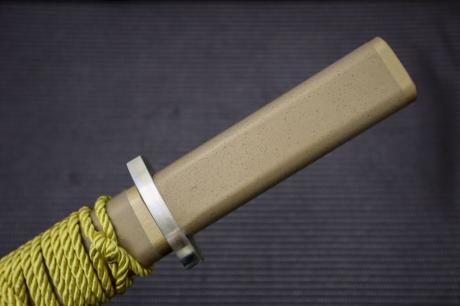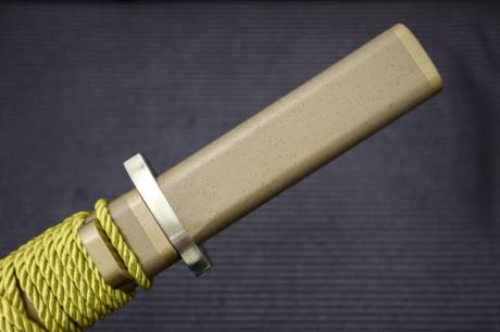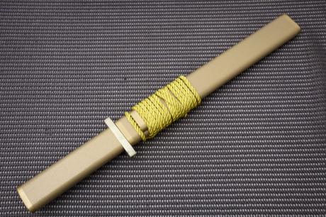 柄は洋樫/朴木柄に漆を15回塗り重ねた漆拵、