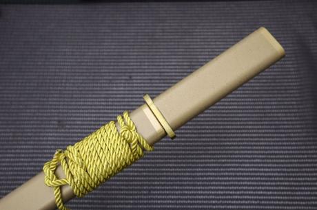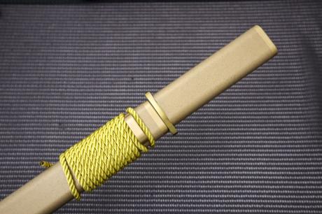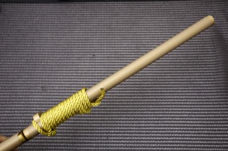 柄は洋樫/朴木柄に漆を15回塗り重ねた漆拵、
