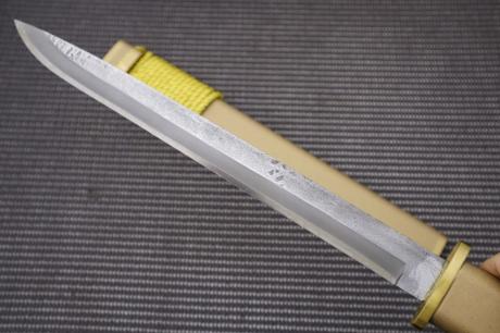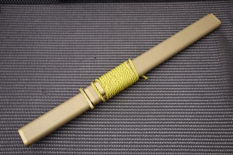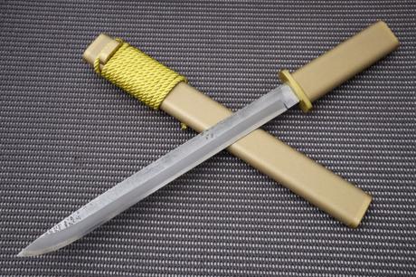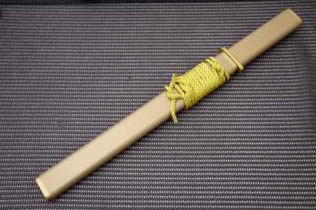 トップページ【漆拵 ダマスカス有害駆除鉈】 > 【漆拵 ダマスカス有害駆除鉈】002 【漆拵】有害駆除刀【黄金】295 白鋼 両刃 細槌目磨 真鍮W 木鞘金チラシ漆 朴木金チラシ漆 【晶之作】 【訳有/展示会展示品:傷有 ノークレームノーリターン:承諾の上注文】
