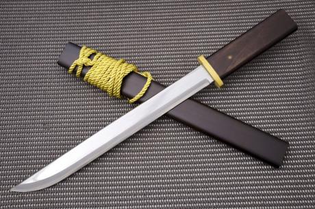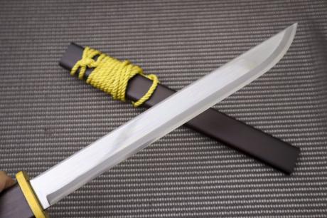 トップページ【漆拵 ダマスカス有害駆除鉈】 > 【漆拵 ダマスカス有害駆除鉈】004 【ウレタン】有害駆除刀300 白鋼 両刃 磨 真鍮W 【木鞘朴木 朴木柄】/オイルステンウレタン 【晶之作】
