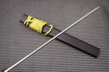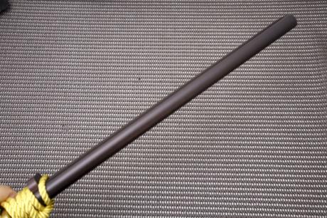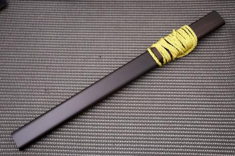 柄は洋樫/朴木柄に漆を15回塗り重ねた漆拵、