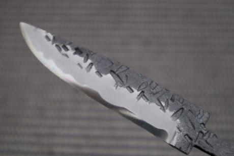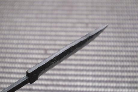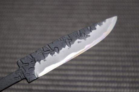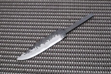 トップページ【アウトドア遊鉈特集】 > 【アウトドア遊鉈特集】001 鍛造小刀70 白鋼 両刃 黒槌目 フルタング 【晶之作】【訳有/展示会展示品:傷有 ノークレームノーリターン:承諾の上注文】」