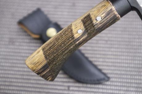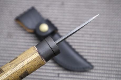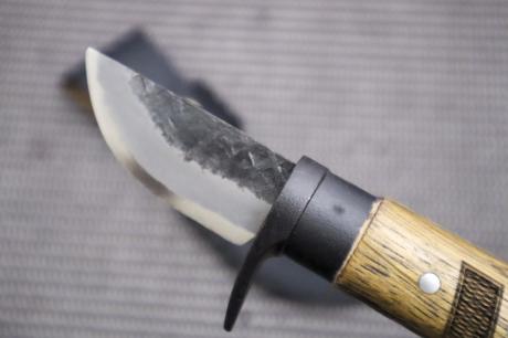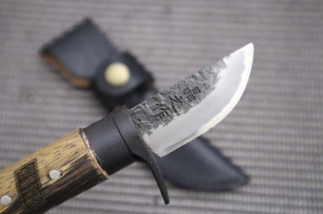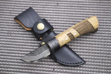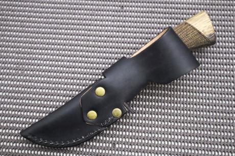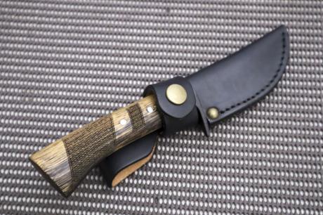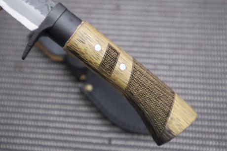 木鞘には牛革バンドを装備し、腰ベルトに装着できるため、野外作業や狩猟時の持ち運びも快適です。