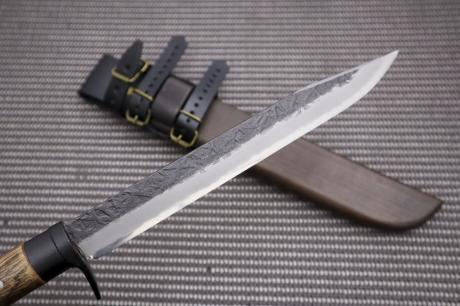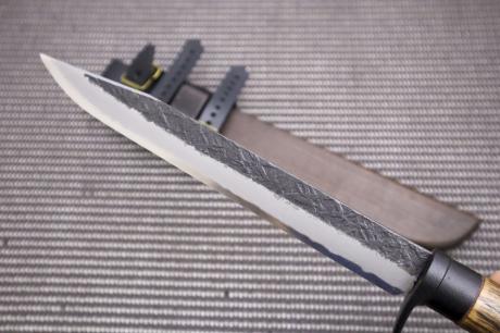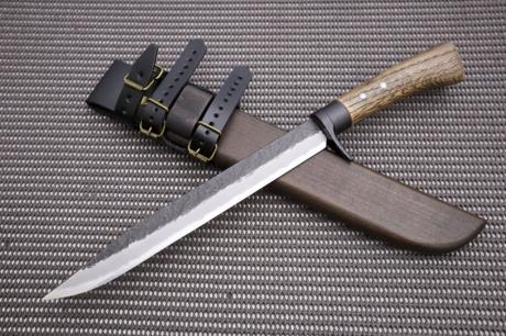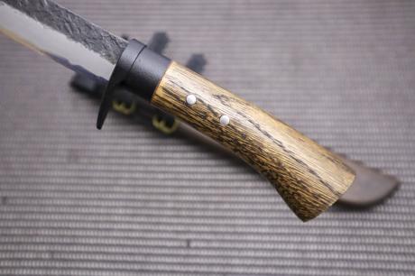 トップページ【狩猟愛好家道具特集】 > 【狩猟愛好家道具特集】005 剣鉈210 白鋼 両刃 黒槌目 黒ツバ゛ 木鞘オイルステン 洋樫オイルステン 【晶之作】 【訳有/展示会展示品:傷有 ノークレームノーリターン:承諾の上注文】
