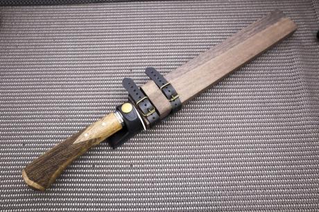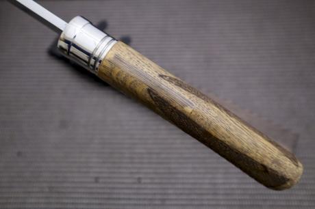 | 厚mm/鋼/柄/輪/重g | 5.8/土佐オリジナル白鋼/樫テェッカーオイルステン/真鍮ツバ/480 |