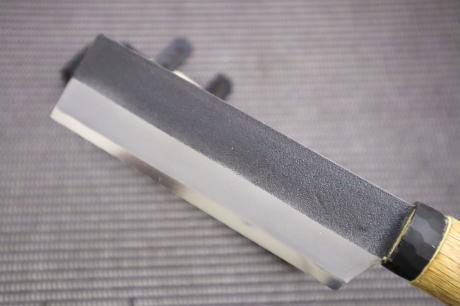 トップページ【土佐万能鉈特集】 > 【土佐万能鉈特集】007 土佐竹割鉈125 白鋼 両刃 黒槌目 黒丸輪 木鞘 洋樫 【晶之作】 【訳有/展示会展示品:傷有 ノークレームノーリターン:承諾の上注文】